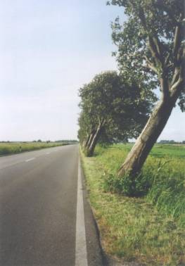 Kurz darauf finde ich mich in Richtung Mecklenburg wieder. Die erstmals trockene und teilweise sogar sonnige Fahrt zur Fähre nach Travemünde weiter über Klütz nach Wismar entschädigt mich schon fast vollständig. Die ‚Zone' begrüßt mich, ich grüße vertraut zurück. Ja, so soll es sein, das ist es, was ich suche! Kleine Straßen, kaum befahrene Alleen, von mir aus auch mit schlechtem Belag. Mit Grauen denke ich zurück an die perfekt asphaltierten, breiten, mit großzügiger Sicherheitszone versehenen, kerzengeraden, gähnend langweiligen 'Landstraßen' Dänemarks.