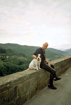 Auf der Terrasse des Antica Locanda del Borgo sehe ich zum ersten Mal dem Sonnenuntergang zu, blicke in das tiefe Tal unter mir, dunstig, die späte Sonne färbt den Dunst kupfern, goldfarben. Meine Frau fehlt mir. Es ist zu schön hier für mich alleine. Junge Hunde jaulen herzzerreißend, sie sind auf einer Terrasse ausgesperrt. Der ganz Kleine klingt fast wie ein weinendes Baby. Ein anderer, grösserer Hund sieht mich an, legt sich auf ‚seine' Straße und wartet. Der gefällt mir, ich ihm auch. Zehn Minuten später balgen und spielen wir. Liebe auf den ersten Blick. |