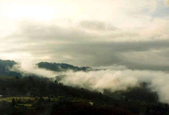 Am letzten Urlaubstag nochmal entspannte Kurven auf der SS64, nach hiesigen Verhältnissen eine grosse, gerade Hauptstrasse, für Nordeuropäer eine mittlere, recht kurvige Landstrasse. Wichtig: Es geht immer mal 100-1000 Meter geradeaus, um auch mal die Landschaft zu sehen. Kurven gibt es immer noch genug. Mittlerweile ist die Sonne untergegangen, wieder liegt das Tal im Nebel... ... und wieder ist es früher Morgen, in vierundzwanzig Stunden bin ich zurück in Hamburg. Die Sonne kitzelt die nebelverhangenen Berge wach. Weisse Helligkeit, ein herrlicher Ausblick, eine kalte Nase, warmer Cappuccino, ein grosses schwarzes Motorrad, ein schwarz gekleideter Mann und eine Träne beginnen diesen letzten Tag. |